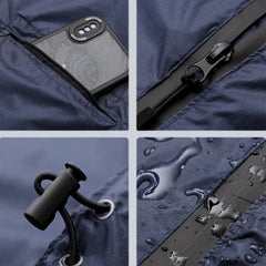 In tegenstelling tot traditionele poncho’s heeft dit model een front-rits die het aantrekken en uittrekken makkelijker maakt, zelfs als je hem over meerdere lagen of een rugzak draagt. De rits is waterbestendig afgewerkt zodat er zo min mogelijk vocht binnenkomt.