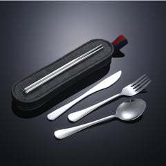 De set bevat een 1010-stijl mes, vork, lepel en een volledige set eetstokjes. Zo heb je altijd passend bestek bij je — van warme maaltijden tot soep, noedels, snacks of lunchgerechten.